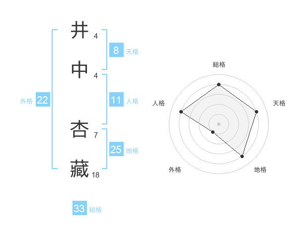 井中 杏藏さんを姓名の画数から五運を鑑定