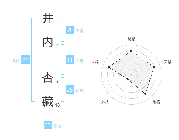 井内 杏藏さんを姓名の画数から五運を鑑定
