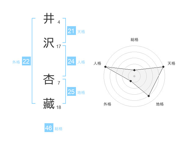 井沢 杏藏さんの地格は25画の4点!