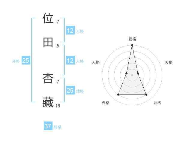 位田 杏藏さんの総格は37画の5点!