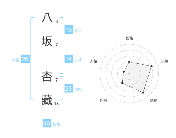 八坂 杏藏さんを姓名の画数から五運を鑑定