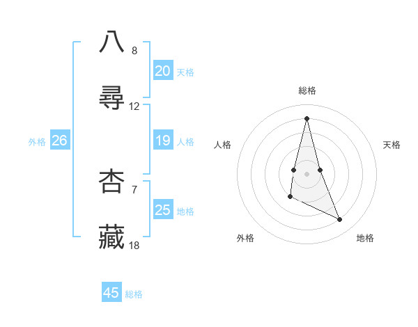 八尋 杏藏さんを姓名の画数から五運を鑑定
