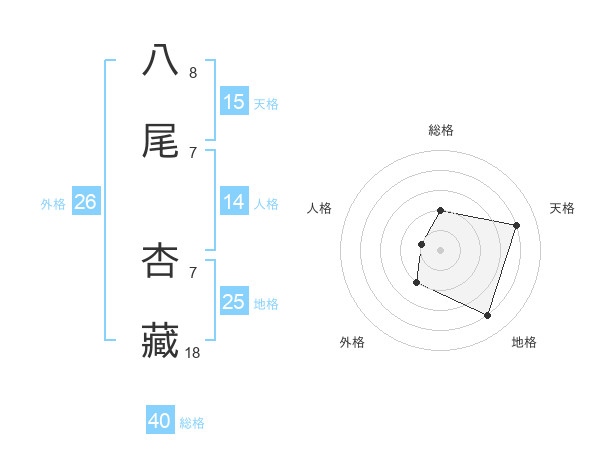 八尾 杏藏さんの地格は25画の4点!