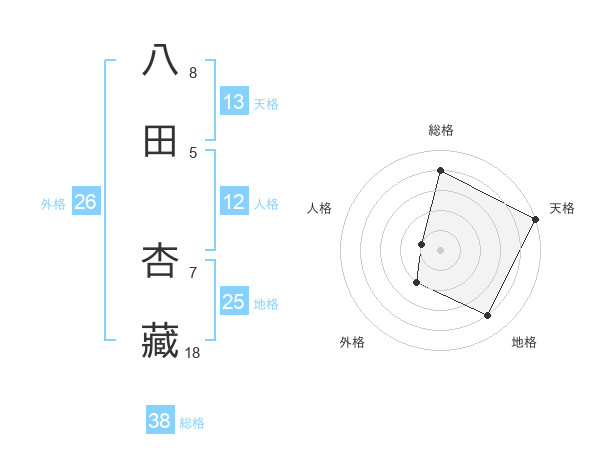 八田 杏藏さんの総格は38画の4点!