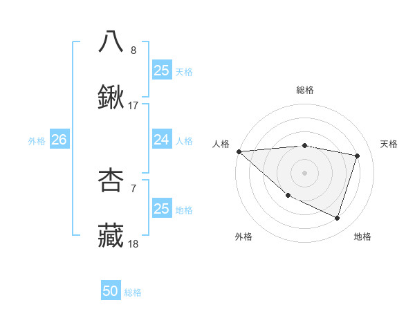 八鍬 杏藏さんの総格は50画の2点!