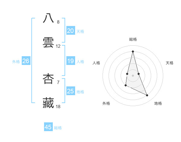 八雲 杏藏さんの天格は20画の1点!
