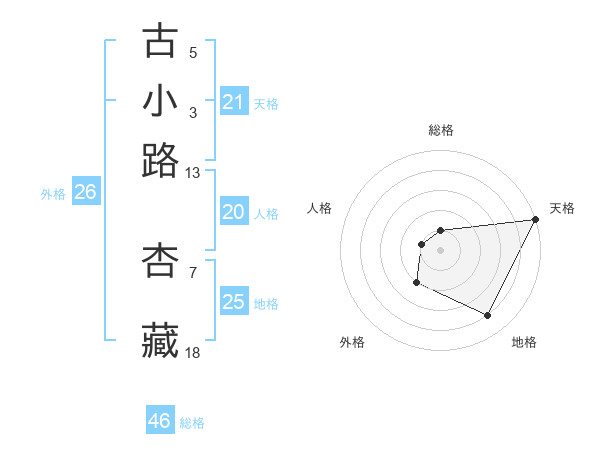 古小路 杏藏さんの天格は21画の5点!