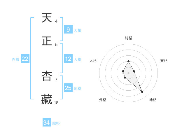 天正 杏藏さんの総格は34画の2点!