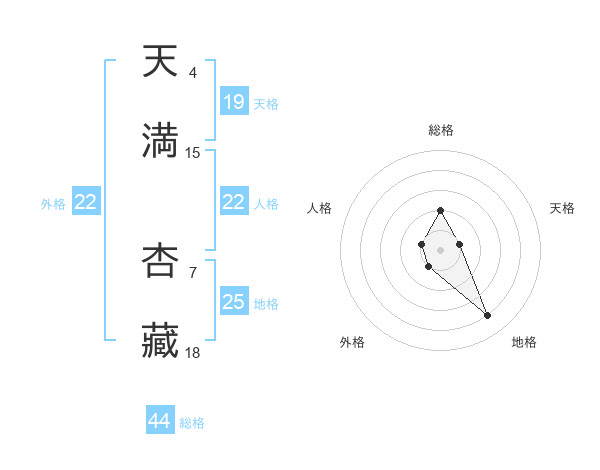 天満 杏藏さんの外格は22画の1点!