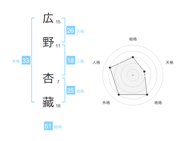 広野 杏藏さんの総格は51画の3点!
