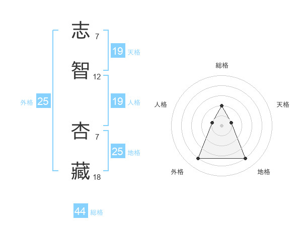 志智 杏藏さんの総格は44画の2点!