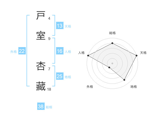 戸室 杏藏さんを姓名の画数から五運を鑑定