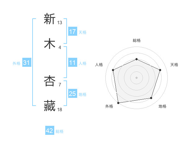 新木 杏藏さんを姓名の画数から五運を鑑定