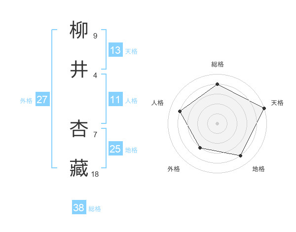 柳井 杏藏さんの総格は38画の4点!