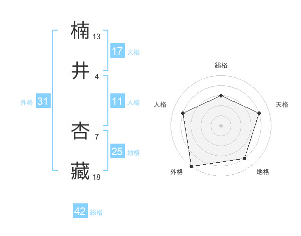 楠井 杏藏さんの外格は31画の5点!