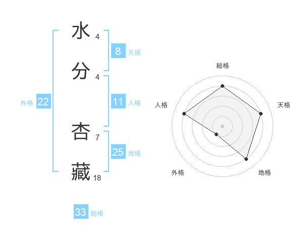 水分 杏藏さんを姓名の画数から五運を鑑定