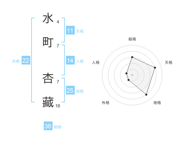 水町 杏藏さんを姓名の画数から五運を鑑定