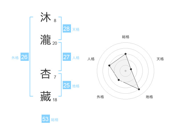 沐瀧 杏藏さんを姓名の画数から五運を鑑定