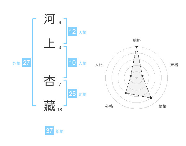 河上 杏藏さんの総格は37画の5点!