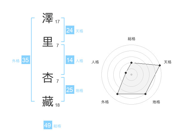 澤里 杏藏さんを姓名の画数から五運を鑑定
