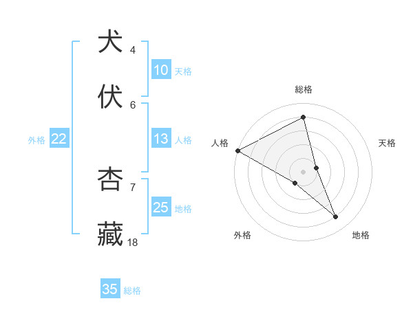 犬伏 杏藏さんの総格は35画の4点!