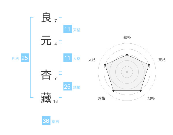 良元 杏藏さんの天格は11画の4点!