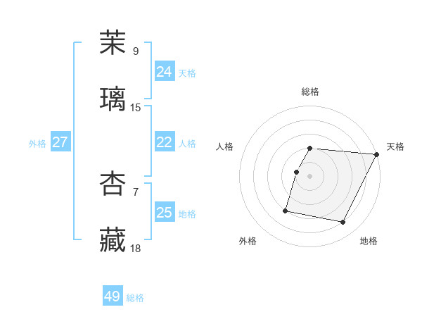 茉璃 杏藏さんを姓名の画数から五運を鑑定