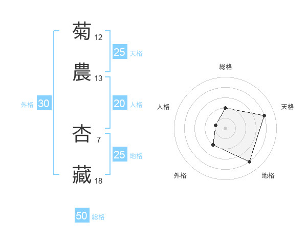 菊農 杏藏さんを姓名の画数から五運を鑑定