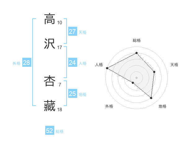 高沢 杏藏さんを姓名の画数から五運を鑑定