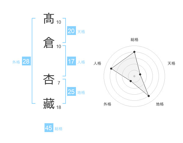 髙倉 杏藏さんの総格は45画の4点!