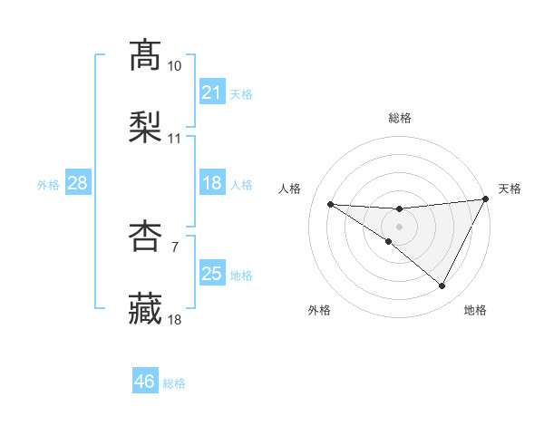 髙梨 杏藏さんを姓名の画数から五運を鑑定