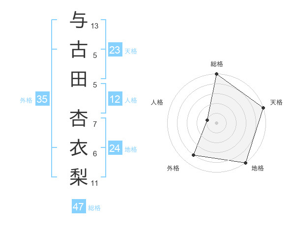 与古田 杏衣梨さんを姓名の画数から五運を鑑定