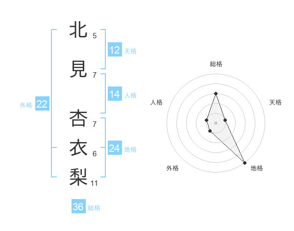 北見 杏衣梨さんの地格は24画の5点!