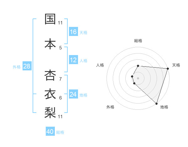 国本 杏衣梨さんを姓名の画数から五運を鑑定
