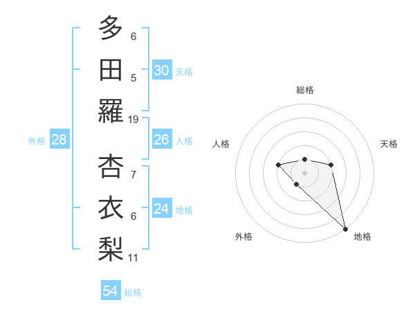 多田羅 杏衣梨さんを姓名の画数から五運を鑑定