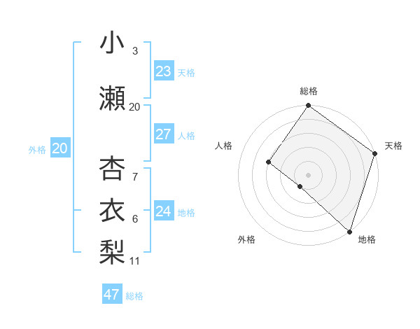 小瀬 杏衣梨さんの総格は47画の5点