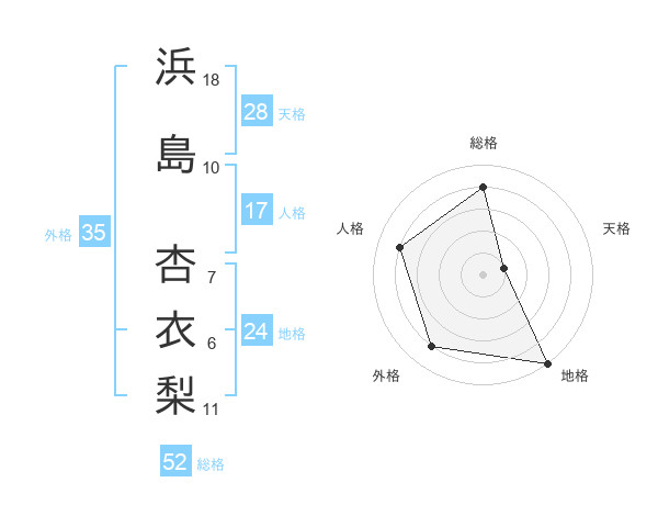 浜島 杏衣梨さんを姓名の画数から五運を鑑定