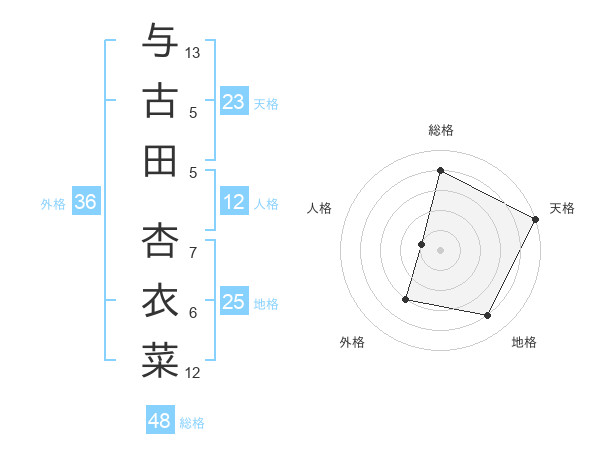 与古田 杏衣菜さんを姓名の画数から五運を鑑定
