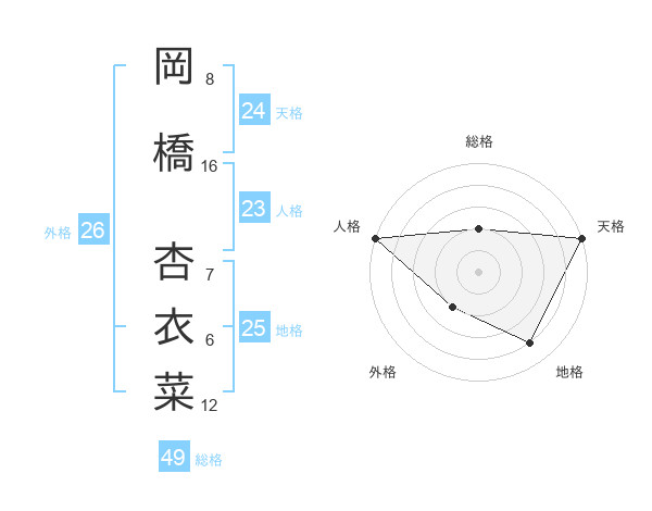 岡橋 杏衣菜さんを姓名の画数から五運を鑑定