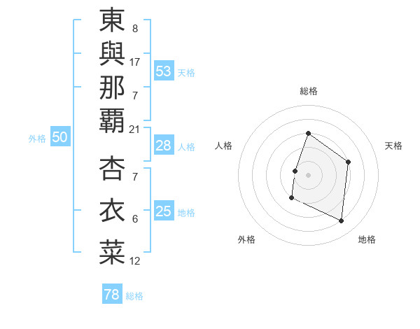 東與那覇 杏衣菜さんの総格は78画の3点!