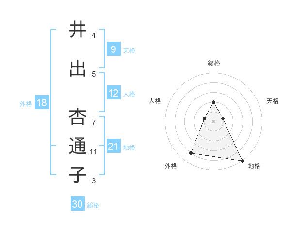 井出 杏通子さんを姓名の画数から五運を鑑定