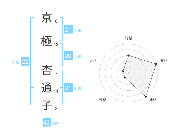 京極 杏通子さんの総格は42画の3点!