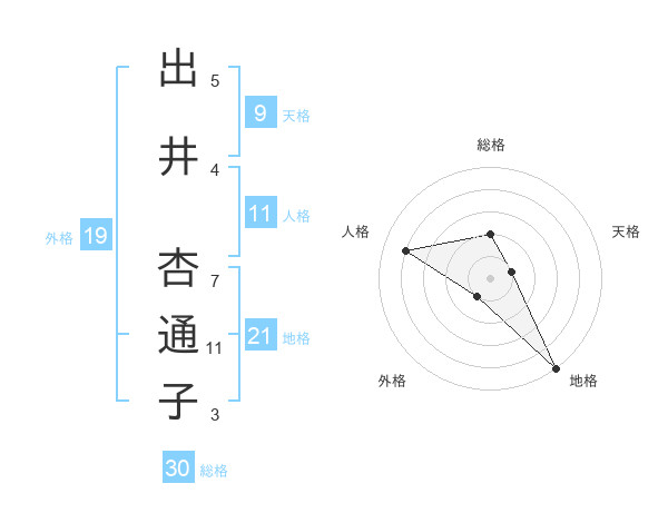 出井 杏通子さんを姓名の画数から五運を鑑定