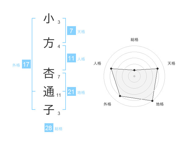 小方 杏通子さんの総格は28画の1点!