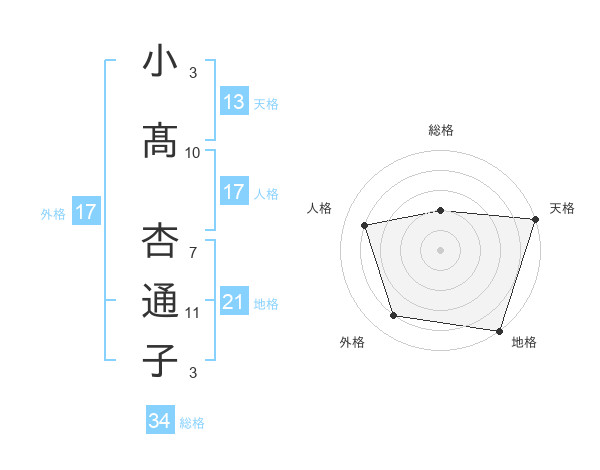 小髙 杏通子さんを姓名の画数から五運を鑑定