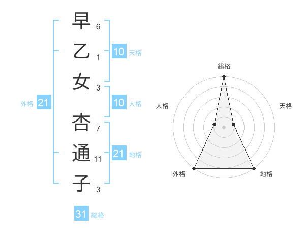 早乙女 杏通子さんを姓名の画数から五運を鑑定