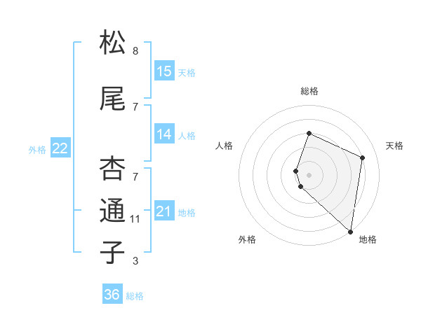 松尾 杏通子さんを姓名の画数から五運を鑑定