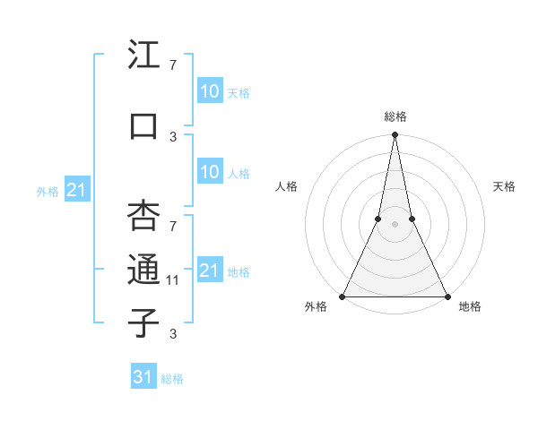 江口 杏通子さんを姓名の画数から五運を鑑定