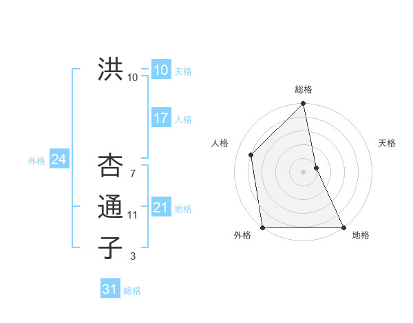 洪 杏通子さんの総格は31画の5点!