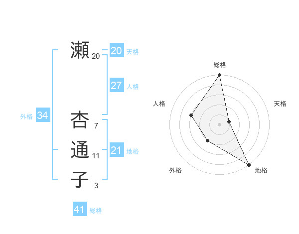 瀬 杏通子さんを姓名の画数から五運を鑑定